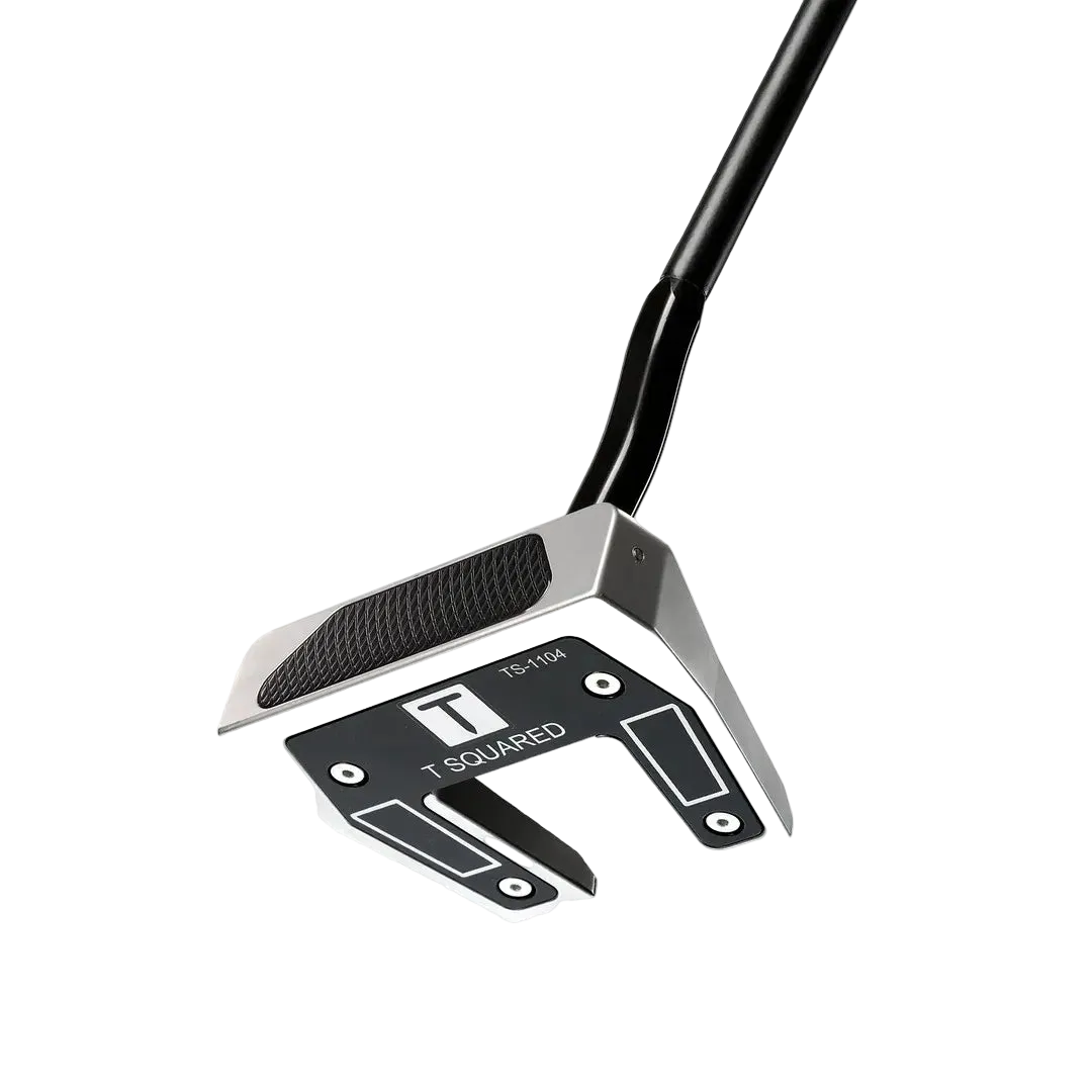The TS-1104 — nicknamed the BIG PAPA — is CNC-milled from 303 stainless steel in the USA. It combines the increased toe flow of a blade with the forgiving MOI of a mallet, making it the most versatile putter in the T Squared lineup. The face features a 6061 aircraft-grade aluminum insert for a softer, more consistent feel at impact. At 360g head weight, it delivers a planted, authoritative stroke.